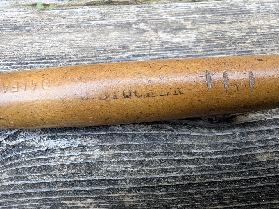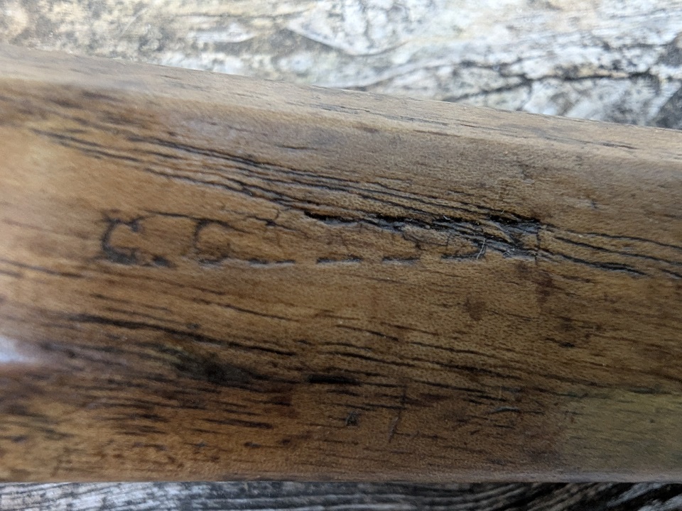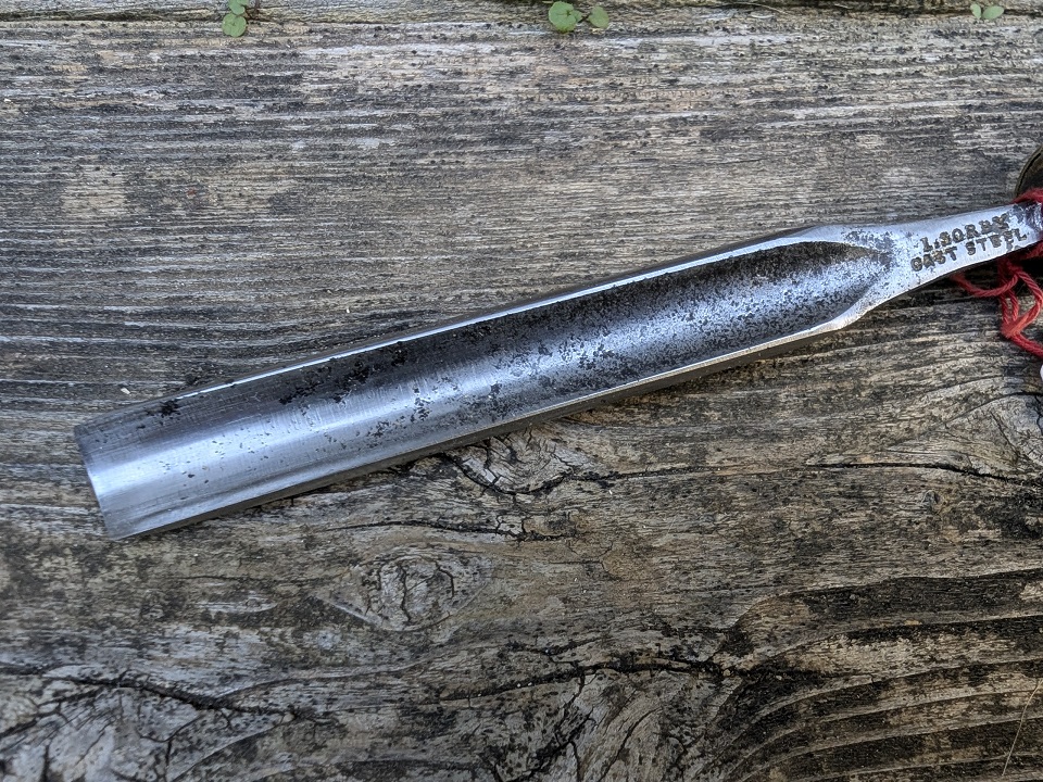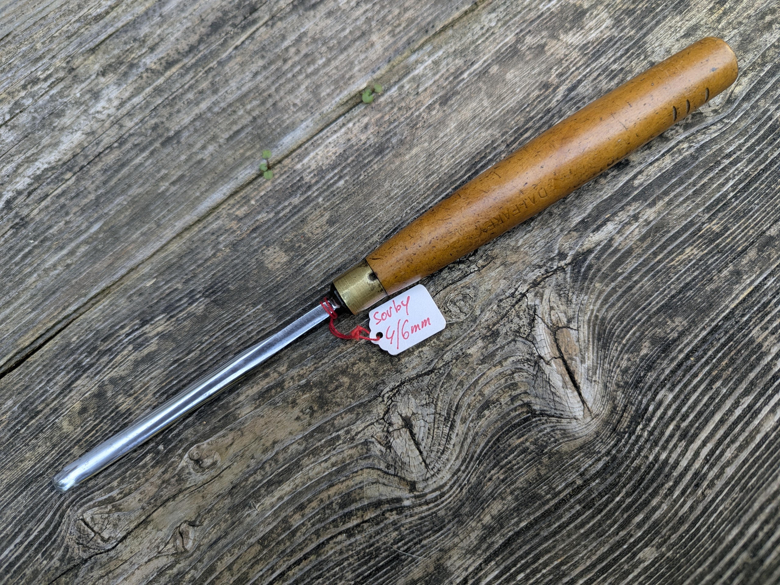 Cette gouge à déjà appartenue à plusieurs sculpteurs, on peut en voir 2 noms gravés sur le manche. C. STOCRER et DAIFAKEY