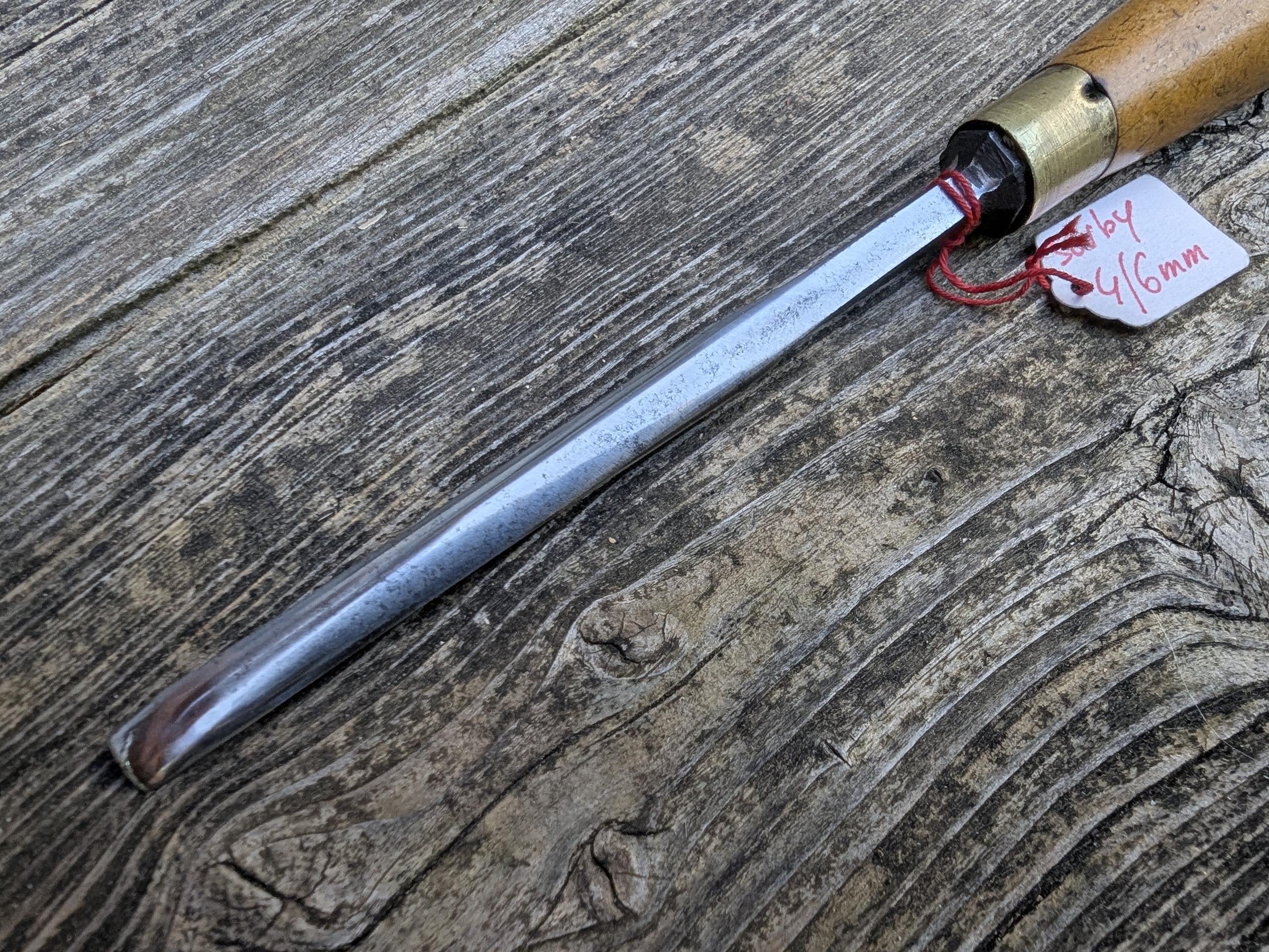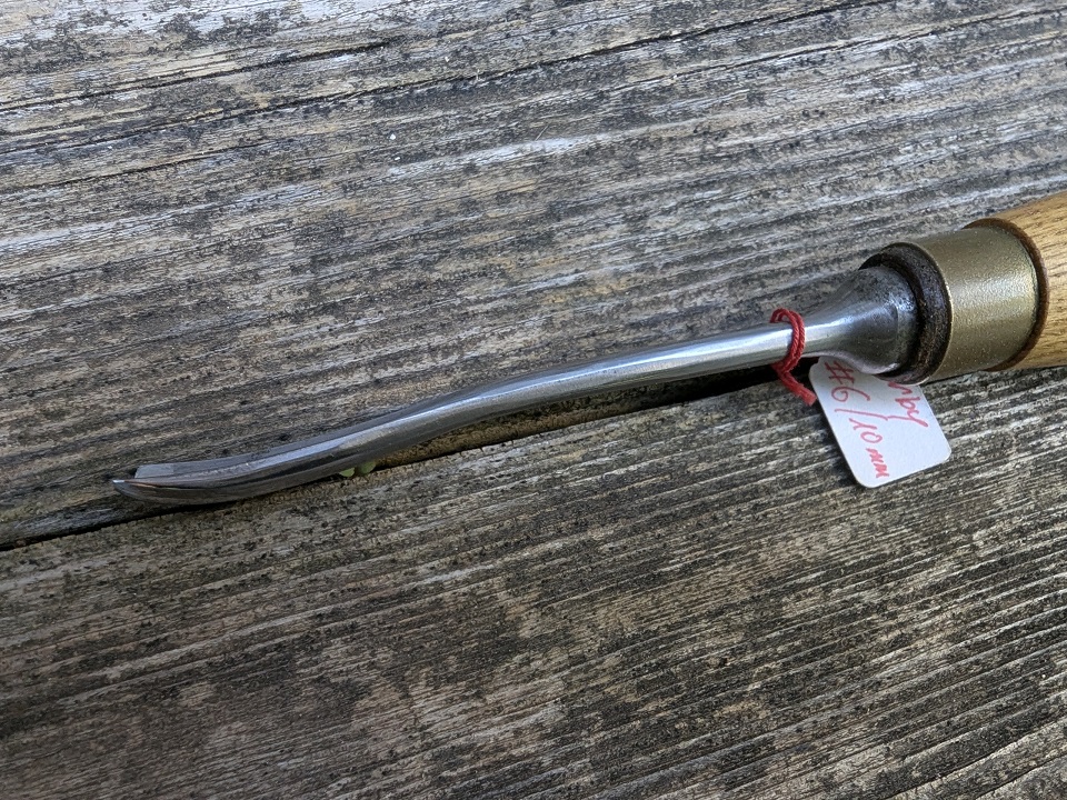 Une gouge moins vieille que les précédentes, mais très pratique par sa forme du manche et du fer très ergonomique.