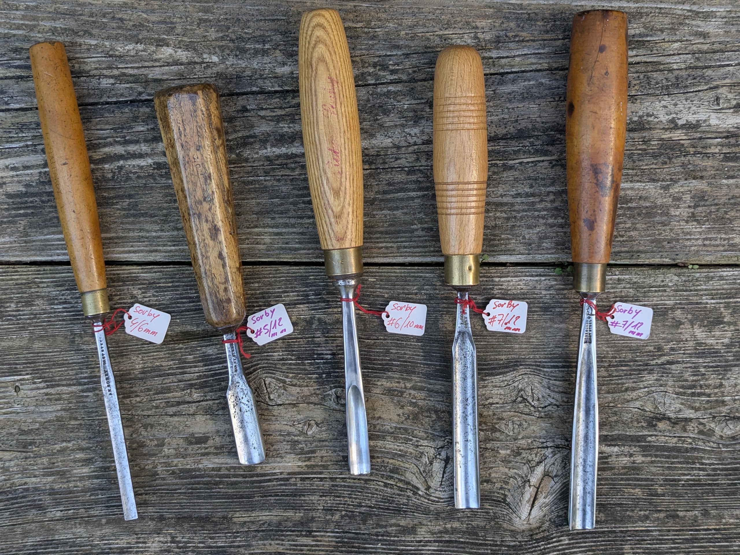 Aujourd'hui, je vous propose 5 anciennes gouges Sorby à la vente.