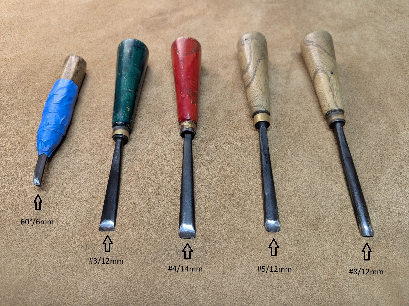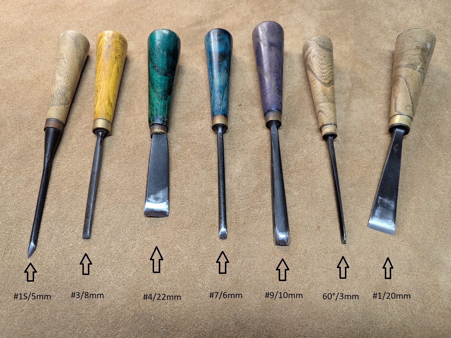 Lorsque l'on débute, on commence par un set de base de quelques gouges, pour pouvoir se faire la main et se familiariser à leurs maniement.