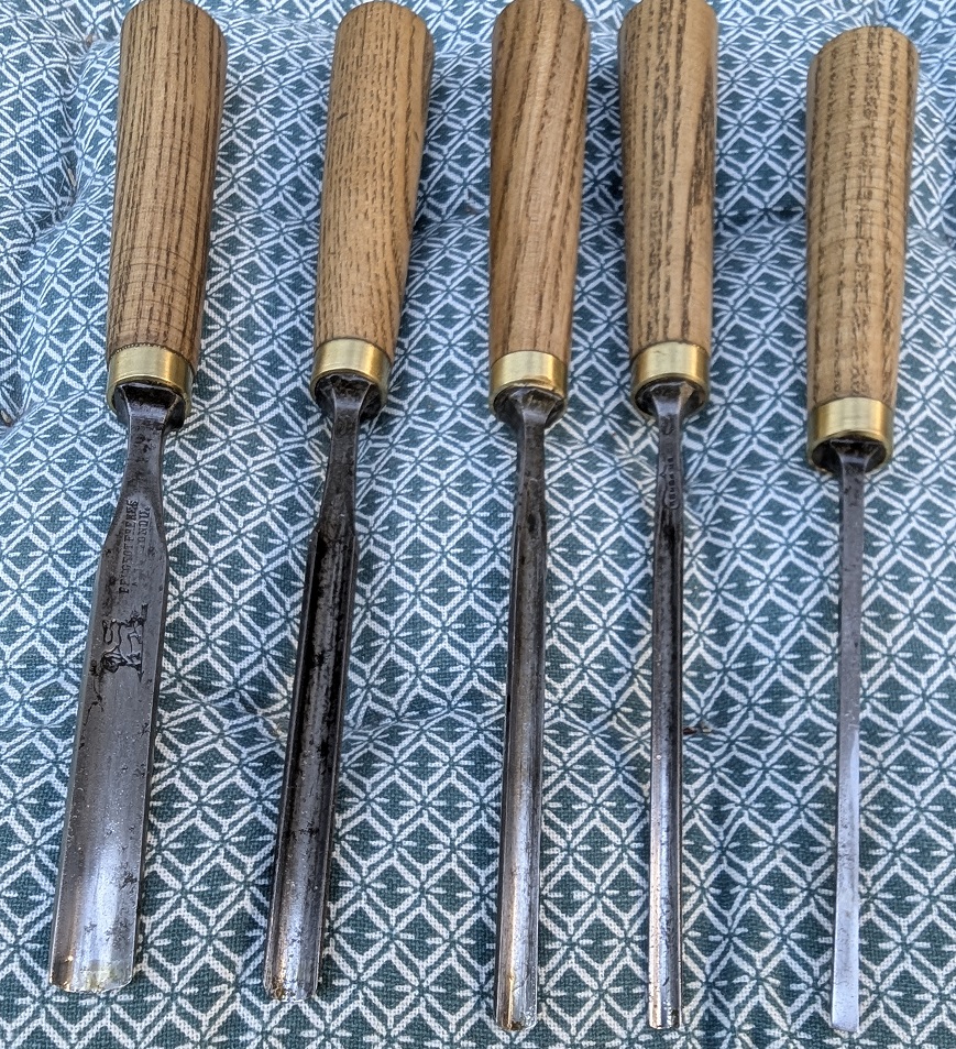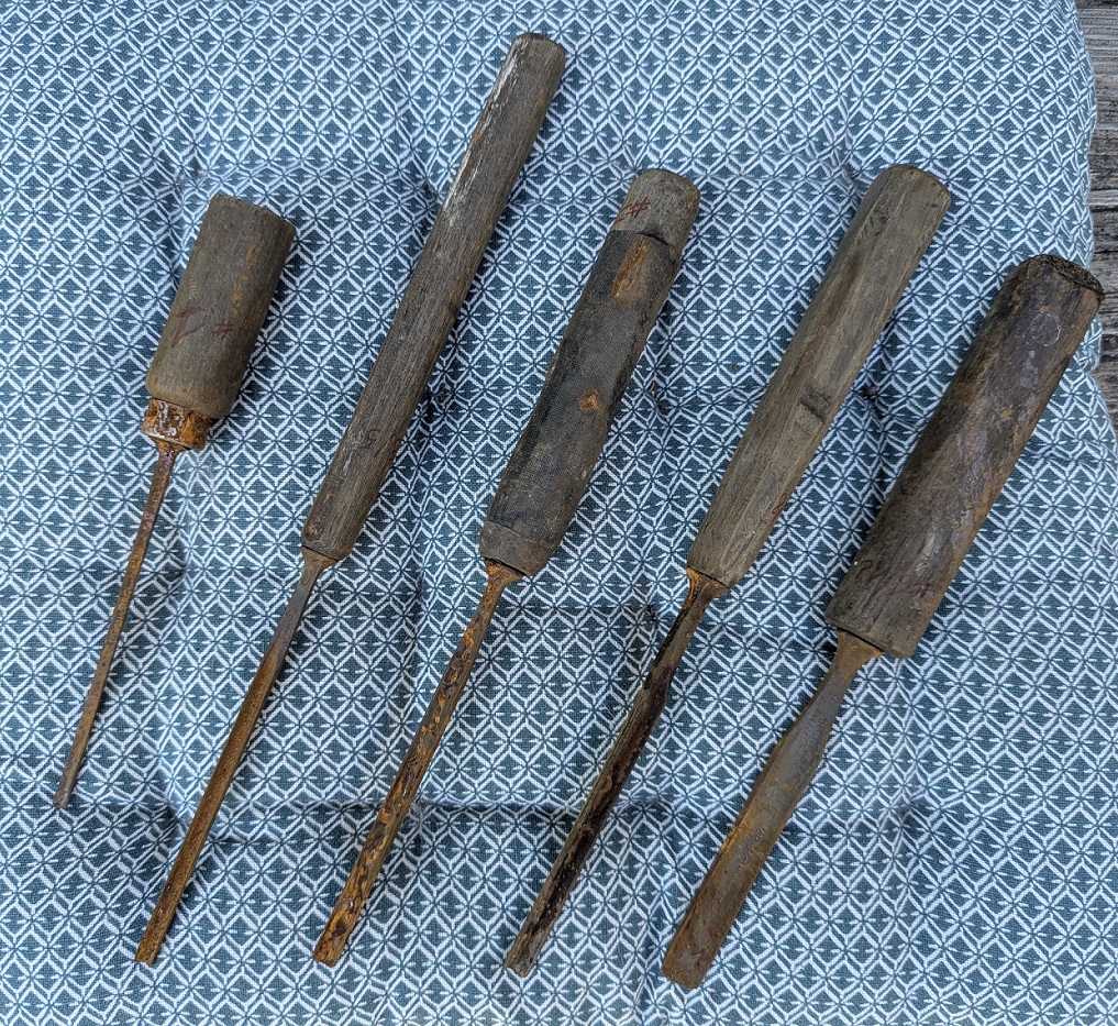 Chinées lors d'un vide-greniers, ces cinq gouges de sculpture sur bois avaient connu des jours meilleurs.